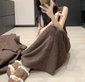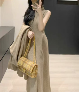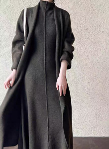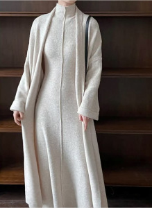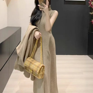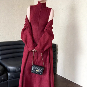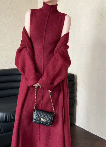 PH096大爱美依缘2025秋冬新款时尚针织开衫+无袖高领连衣裙两件套