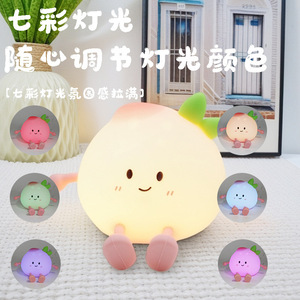 跨境硅胶小夜灯小桃子伴睡氛围灯创意摆件手机支架礼品拍拍灯台灯