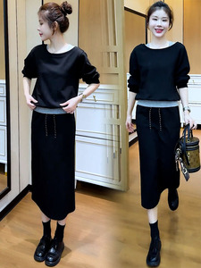 时尚套装裙女2025秋季新款洋气显瘦假两件拼接卫衣半身裙两件套潮
