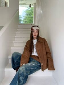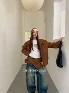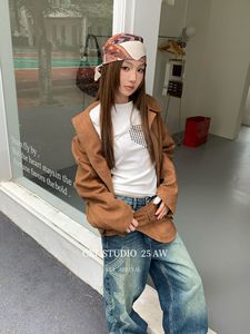 CXI 复古麂皮夹克女秋季新款美拉德上衣小众棕色外套宽松机车上衣