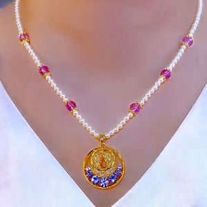 法式气质高级紫罗兰满钻平安扣项链奢华镂空网纱紫色水晶时尚百搭