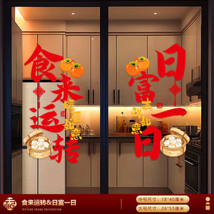 乔迁橱窗贴【食来运转+日富一日】大号静电贴