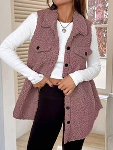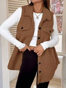 欧美跨境热销爆款双面毛绒翻领纽扣开衫口袋款秋冬毛绒马甲独立站