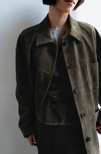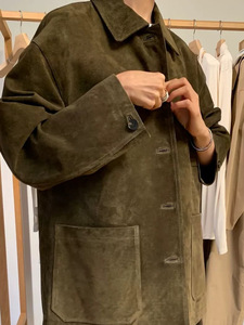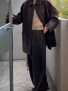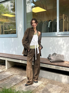 现H2025秋季新款韩国东大门mo*oha复古工装风翻领麂皮外套/休闲裤