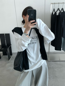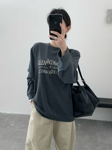 THINK十三行韩系复古字母T恤女2025秋宽松加厚磨毛休闲松弛感上衣