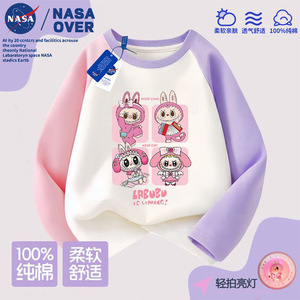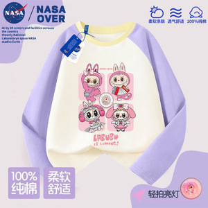 NASA儿童俏皮拉布布纯棉插肩长袖t恤春秋季新款中大童亮灯打底衫