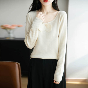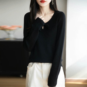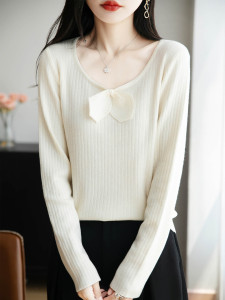 法式设计感蝴蝶结内搭针织衫女2025秋冬新款精纺细毛显瘦打底毛衣