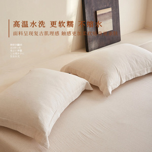 天然A类棉麻10%亚麻+90%纯棉全棉色织枕套单只48*74一对装民宿风