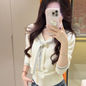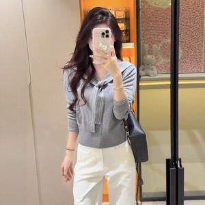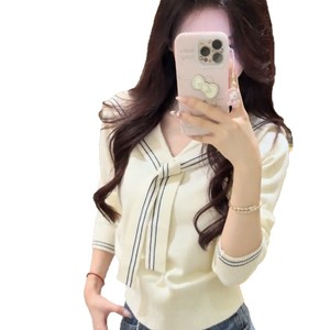 KANING海军领披肩长袖针织衫女2025秋新款高级感内搭显瘦毛衣上衣