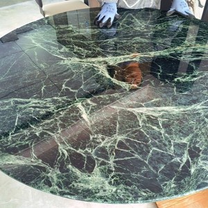 天然大花绿奢石圆餐桌意式轻奢高级感家用客厅天然大理石圆形餐桌