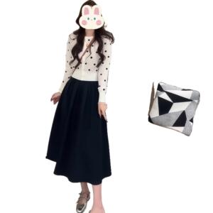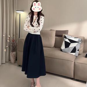 新款气质提花长袖针织开衫上衣+半身裙秋季百搭潮流时尚