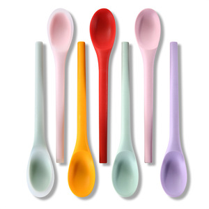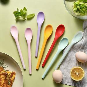 跨境硅胶勺子长柄一体沙拉勺耐高温搅拌勺厨房餐具儿童餐勺小密勺