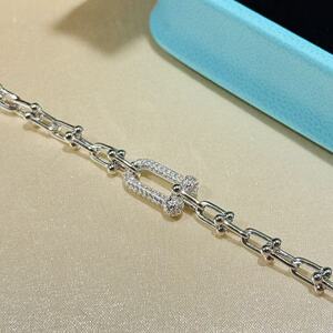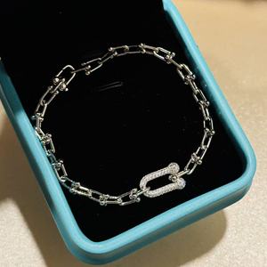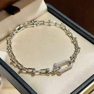 S925纯银 马蹄扣半钻手链环环相扣轻奢小众设计感百搭