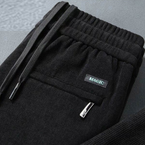 秋冬厚款男裤灯芯绒松紧腰男士运动裤宽松休闲裤男加绒款外贸跨境