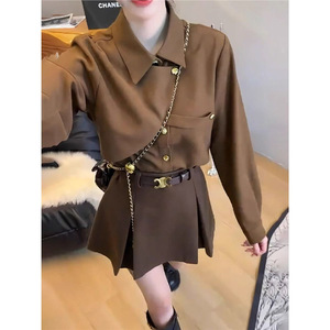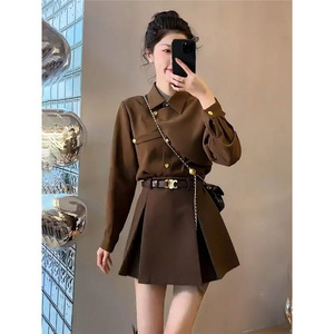 咖色衬衫+咖色短裙【送腰带】