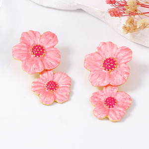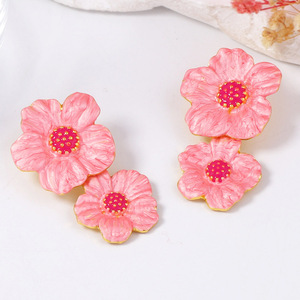 跨境欧美简约时尚清新甜美合金滴油花朵耳钉百搭日常通勤女耳饰