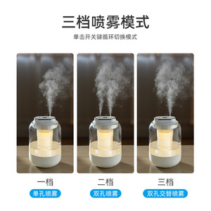 新款双喷大容量加湿器家用卧室氛围灯大雾量静音喷雾器usb净化器