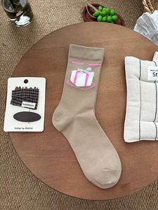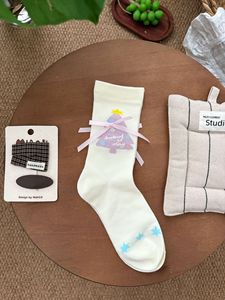 银丝礼物 韩国手工蝴蝶结中筒袜棉卡通无骨撞色日系复古堆堆袜子