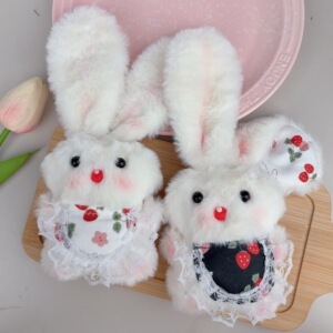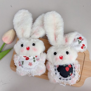 网红爆款围兜长耳兔毛绒挂件吱吱叫批货公仔玩偶包包钥匙扣挂饰
