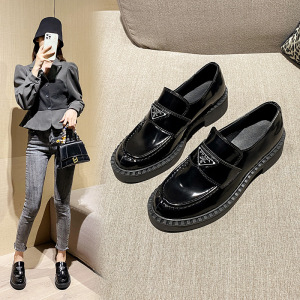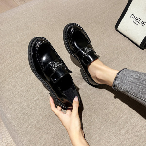 真皮厚底乐福鞋女2025年秋冬季新款棕色通勤一脚蹬单鞋百搭小皮鞋