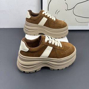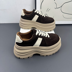 真皮复古松糕鞋女款2025年秋季新款圆头系带休闲鞋百搭厚底德训鞋