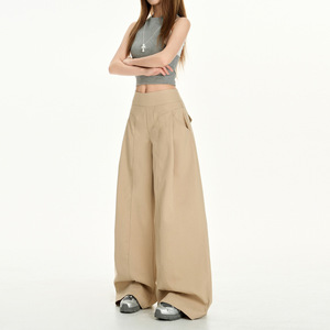 实拍慵懒风设计军绿色休闲裤女夏季高腰宽松阔腿裤拖地长裤