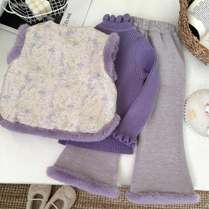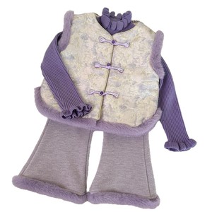 2025新款女童加厚冬季中国风儿童毛毛边加厚马甲长裤两件套68782
