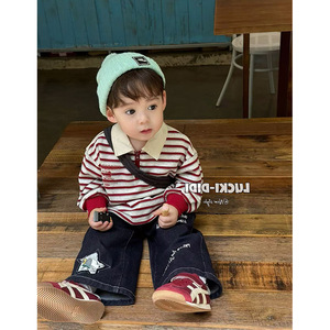 男童帅气条纹polo衫儿童休闲翻领卫衣2025春秋中小童长袖T恤上衣