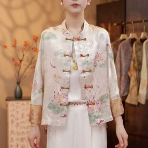 【荷花】双面双穿新中式提花国风香云纱复古时尚盘扣新款上衣开衫