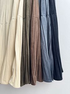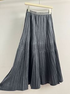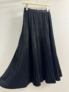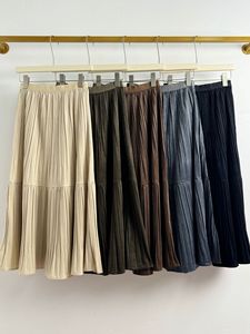 秋冬季丝绒拼接百褶垂感大摆半身裙百搭A字通勤显瘦中长款裙子女