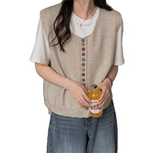 新款复古风无袖毛衣马甲女叠穿慵懒风针织上衣高级感开衫背心