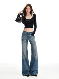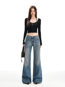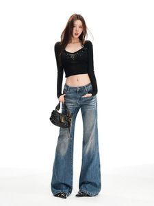 橙绢女装#美式复古不贴腿微喇牛仔裤秋季低腰水洗垂感直筒喇叭裤