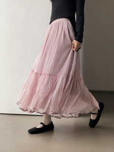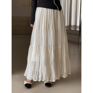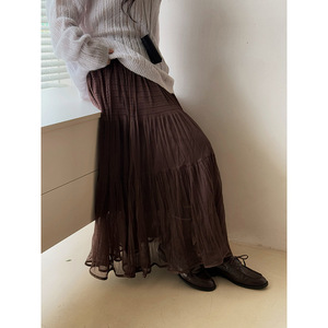 【少女的梦核】歌铭法式复古压褶网纱蛋糕裙秋季a字半身长裙N552C