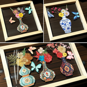 【两个青花琺琅琺琅干花材料包】30*30双层亚克力框