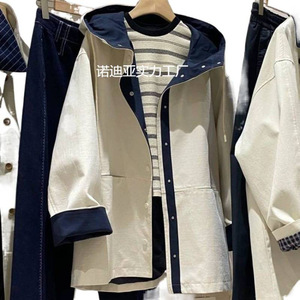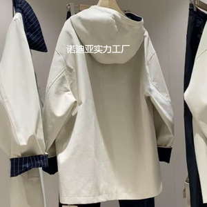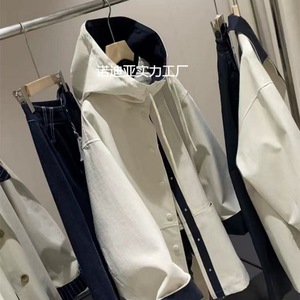 韩系撞色感风衣外套女秋秋新款小个子连帽日系英伦风休闲