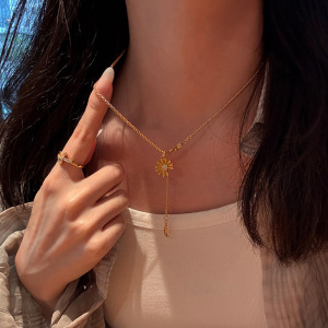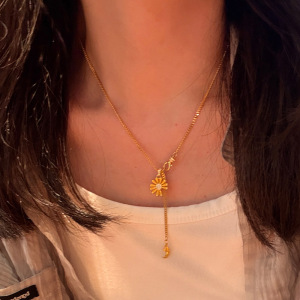 小红书爆款雏菊花朵月牙款项链精致独特百搭流苏长款项链一件代发