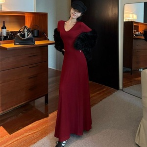 安哥拉红长裙 【安哥拉红V领连衣裙】