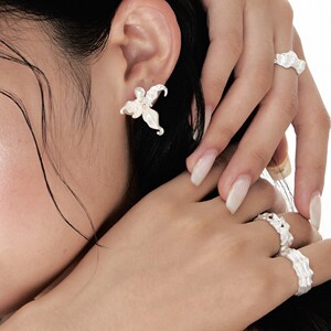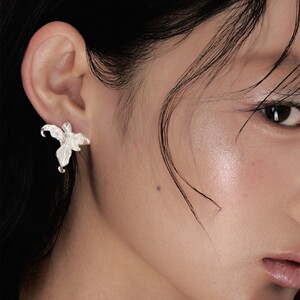 新品纯白鸢尾花时尚夸张耳饰小众设计轻奢高级感气质冷淡风耳钉女