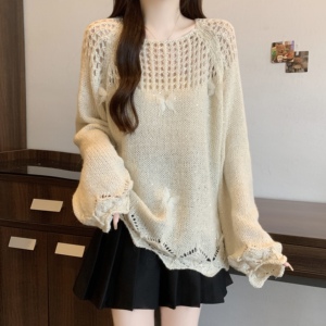 圆领立体蝴蝶设计镂空钩花毛衣女秋冬大胖妹妹高级气质显瘦百搭衣