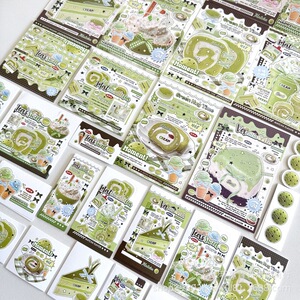 小兽星D家文创覆膜ins风绿色清新抹茶贴纸包卡头折页打包套装贴纸