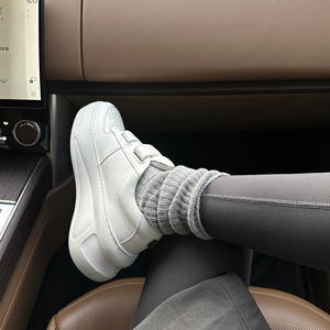 牛皮版~小个子增高真皮厚底小白鞋女魔术贴松糕鞋老爹鞋休闲板鞋