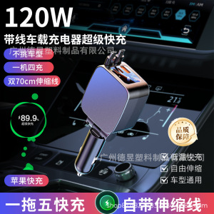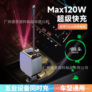 跨境超级快充星空顶氛围车载充电器伸缩线点烟器华为安卓苹果通用