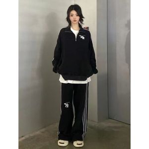 美式春秋新款复古韩版宽松休闲运动套装显瘦慵懒风卫衣时尚两件套