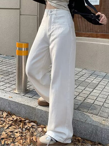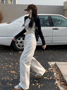 大码白色阔腿牛仔裤女夏季2025新款高腰宽松休闲显瘦设计感直筒裤