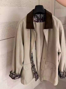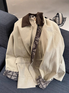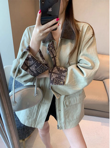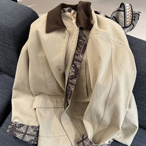 老钱风撞色拼接翻领风衣外套女秋2025新款复古休闲气质中长款夹克