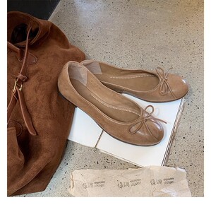 葡萄妈studiolee 油蜡感马皮芭蕾鞋蝴蝶结浅口不累脚平底单鞋女秋