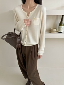 濮院2025秋装桑蚕丝羊毛小v领开衫外套长袖薄款气质毛衣韩版女装