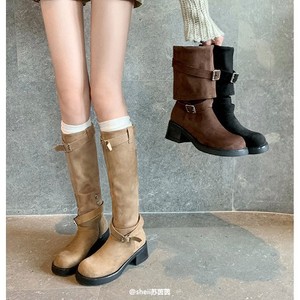 【葡萄妈】西北靴~两穿褶皱粗跟西部沙漠中高筒弹力长靴女堆堆靴