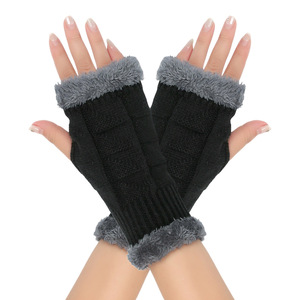 新款跨境秋冬加绒加厚毛绒袖套欧美针织毛线百搭保暖防寒简约