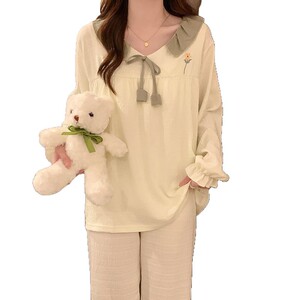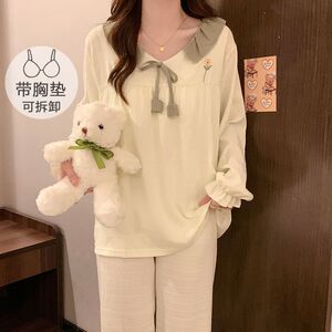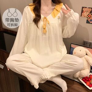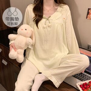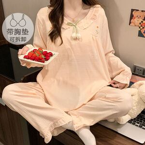云朵棉睡衣女春秋季带胸垫长袖公主风甜美宽松大码胖mm家居服套装